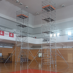 13,60m Gerüst mit Sicherheitsaufbau P2 im Innenraum des MaxicoM Leipzig