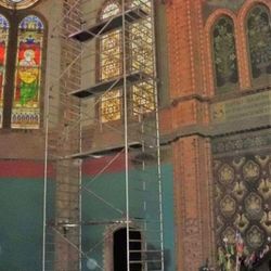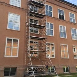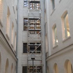 Fahrgerüst 13,00m mit Sicherheitsaufbau P2 in einem windgeschützten Innenhof